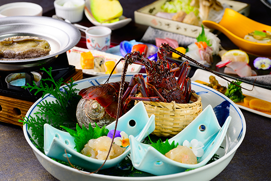 伊勢海老、鮑──豊かな海が育む、極上の味覚がここにあります。新鮮な海の幸を、素材の持ち味を生かしながら、時に豪快に、時に繊細な技を添えて、贅沢な会席料理に仕立てました。