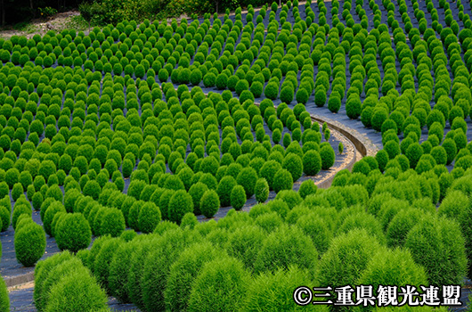 志摩市観光農園では現在、斜面いっぱいに広がるコキアをご覧いただけます。その数は約5,200本で三重県最大級。