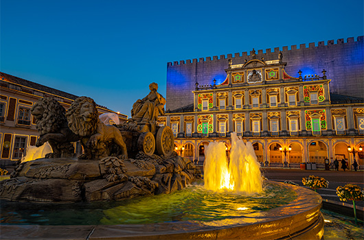 クリスマス期間の志摩スペイン村では、夕暮れ時からイルミネーションが美しく輝きます。エントランスからまっすぐ続くエスパーニャ通りには大きなツリーが飾られ、1日に1回クリスマスソングにあわせて華やかな映像が流れるショーが行われます。