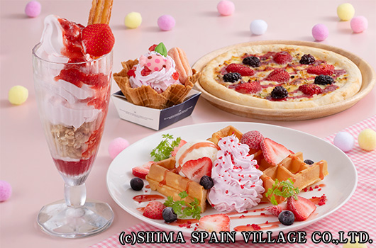 園内の各レストランでは春限定のメニューやいちごスイーツをお楽しみいただけます。
