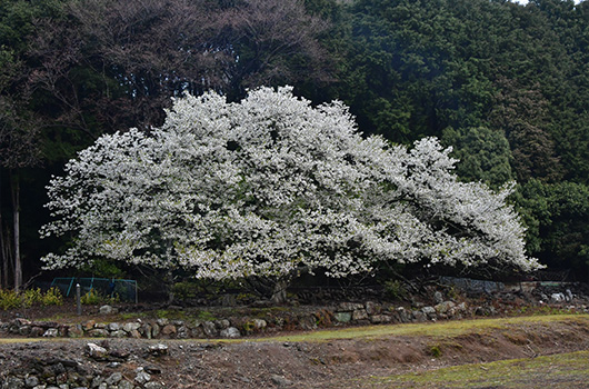 岩戸桜は白い花を咲かせる大島桜で、志摩市の天然記念物に指定されています。